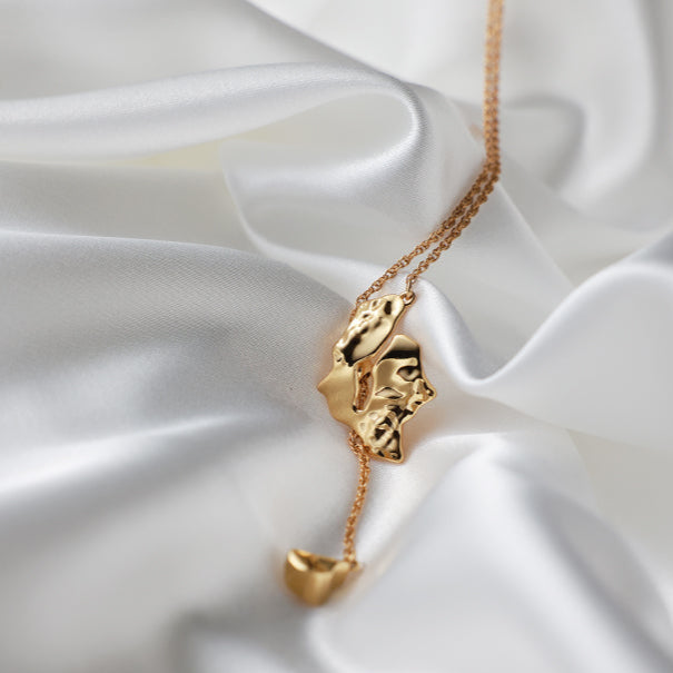 The "Flowing Rock" series was inspired by a trip to the Egyptian desert. "Half water, half fire" refers to the black and white desert. This series uses fragmented rock textures and disordered combinations to make the eroded rocks "flow", awakening the rocks' memory of the "ocean" over time. The main material of this series is 18K gold plating (thick coating). Each earring, each ring, and each necklace has their unique vitality.