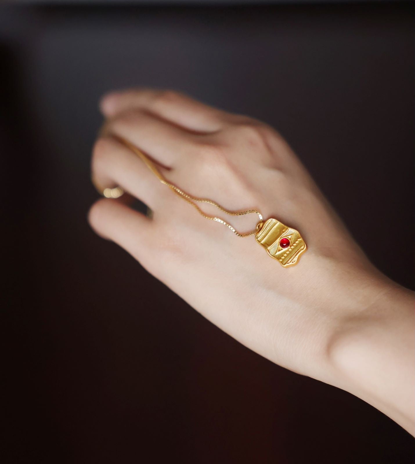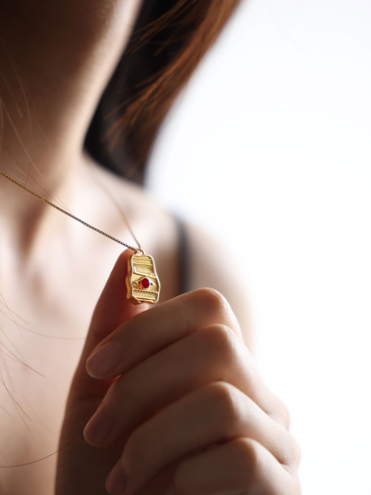This line uses natural stones and 18k gold plating. The vintage gold combined with natural stones and unique setting techniques gives off a vibe that’s both romantic and mystical.